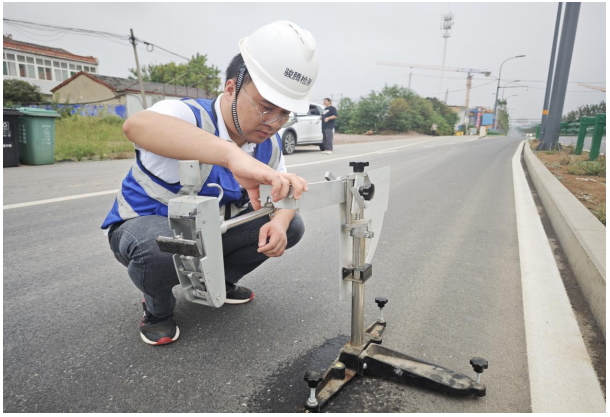 鏡頭流轉(zhuǎn),G312項目上的檢測員汪亮文正全神貫注地進行瀝青路面摩擦系數(shù)檢測,科學(xué)測量用數(shù)據(jù)助力安全坦途。